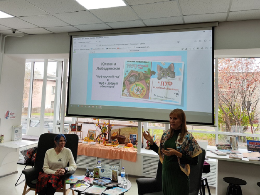 6 октября в модельной библиотеке семейного чтения «Книжная радуга» (ж.р. Кедровка, ул. Новогодняя, 2) состоялась творческая встреча «Создающие сказку» с писателями из Донецка. Мероприятие прошло в теплой и искренней атмосфере и стало для кедровчан значимым культурным событием. Гостями и главными героинями вечера стали две талантливые писательницы из Донецка: Юлиана Лебединская – детский писатель, фантаст, драматург. Член Союза писателей России и Гильдии драматургов. Редактор издательства «Снежный Ком-Дети» (Донецк). Автор 7 книг и публикаций в сборниках. Волонтер. Фалена Лысакова – писатель и художник-иллюстратор, член Союза писателей ДНР, Союза писателей России и Союза литераторов России. Автор и иллюстратор популярной серии книг о Лисёнке. В 2018 году проиллюстрировала «Азбуку Донбасса», которая сегодня есть у каждого первоклассника ДНР. Теплая, почти сказочная атмосфера, созданная за окном падающим снегом, способствовала полному погружению гостей в мир литературы. Читатели с большим интересом слушали рассказы писательниц о процессе создания литературных персонажей, тонкостях иллюстрирования произведений и истории появления их героев. Юлиана Лебединская и Фалена Лысакова продемонстрировали прекрасный творческий тандем. Гости узнали, что авторы не только гармонично дополняют друг друга в общении, но и тесно сотрудничают в работе — Фалена проиллюстрировала несколько рассказов Юлианы. Писательницы также поделились опытом совместной деятельности в проведении познавательных квестов для школьников. По завершении официальной части самые активные участники встречи получили от авторов памятные сувениры — авторские открытки. Все желающие смогли поделиться своими впечатлениями, оставив письменные отзывы на специальных бланках. Коллектив библиотеки «Книжная радуга» выражает глубокую благодарность Юлиане и Фалене за тёплую и содержательную встречу и надеется на дальнейшее сотрудничество. Встреча прошла в рамках проекта «Современная книга шахтёрского края: Кузбасс - Донбасс», который реализуется КРОО «Молодые профессионалы библиотечного дела» с использованием гранта, предоставленного ООГО «Российский фонд культуры» в рамках федерального проекта «Семейные ценности и инфраструктура культуры» национального проекта «Семья». Генеральный партнер: ГАУК «Государственная библиотека Кузбасса для детей и молодёжи». Проект реализуется при поддержке: МАУК «Муниципальная информационно-библиотечная система» г. Кемерово.