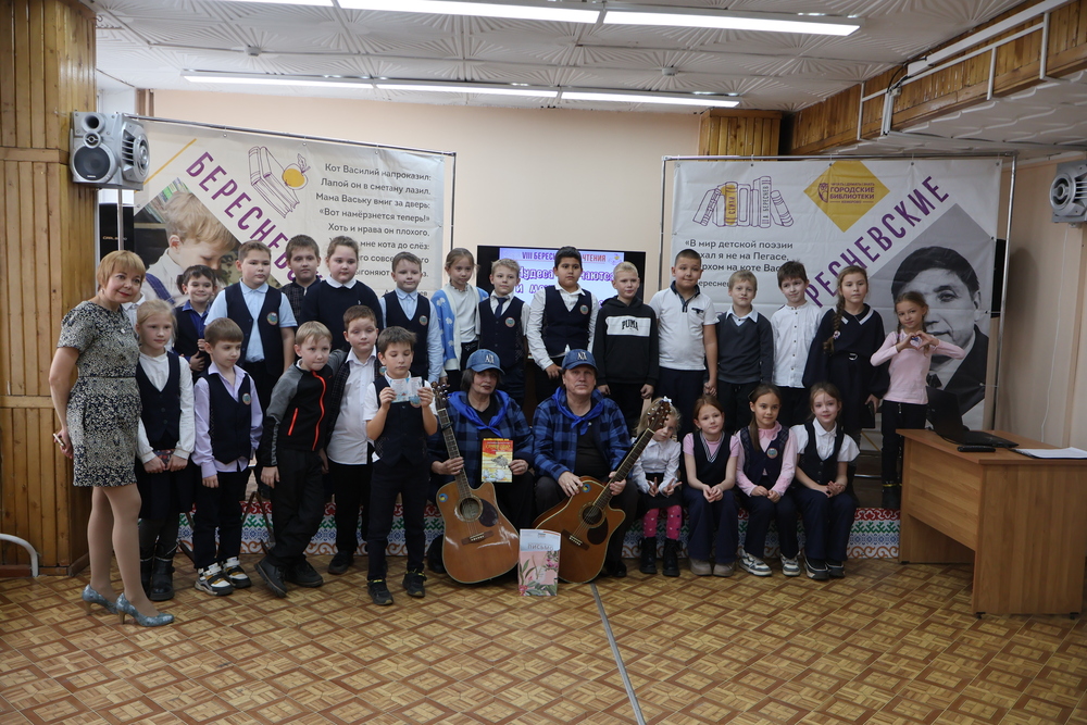 В Детской библиотеке им. А. М. Береснева с большим успехом прошли VIII Бересневские чтения, традиционно посвященные творчеству кузбасского детского поэта Александра Береснева и детской литературе Кузбасса. Главной темой этого года стала «Кошачья тема», объединившая юных читателей в увлекательное литературное приключение. На мероприятие юных гостей приглашал Кот Ученый, а открывал программу Чтений кот Василий – самый известный герой стихотворения Александра Береснева. Он отправился с малышами из детского сада № 198 в «ЗаМУРчательное путешествие» по страницам книг поэта, стремясь загладить свою вину за «лапу в сметане». Васька с блеском выполнил задачу: теперь малыши знают, что Александр Михайлович Береснев когда-то был деревенским мальчишкой Сашей, и все его стихи родом из детства. Вместе с котом Василием дети путешествовали по стихам Береснева, играя в «Кошки-мышки», собирая грибы и определяя дары огорода. Волшебный клубок Васьки привёл их прямо в лес, где ребята угадывали строчки произведений поэта. Путешествие завершилось вручением особенных читательских билетов, фотосессией с Василием и искренним желанием ребят поскорее вновь прийти в гости к поэту в любимую библиотеку. В рамках Чтений также состоялась концерт-презентация книги стихов Татьяны Болотовой «Странная сказка». Участники семейного авторского дуэта «Де’СанТ» – Татьяна и Александр Болотовы – рассказали историю появления этой книги и познакомили с работами юных художников-иллюстраторов, учеников Детской школы искусств № 51 пгт Яя. Маленькие читатели насладились стихами в исполнении автора, слушали детские песни, написанные известными российскими бардами, и авторские мелодии, активно подпевали и танцевали. Добрые и веселые стихи, сотканные из реальных событий детства, помогли ребятам по-новому взглянуть на окружающий мир, полный чудес и волшебства! Интригу добавил литературный квест «Коты ведут расследование», в ходе которого юным детективам предстояло установить кота-проказника, полакомившегося сметаной. Пять книжных котов – Честер, Алекс, Пончик, кот Ученый и Шмяк – делились уликами за успешно выполненные ребятами задания. Расследование было успешно завершено, и виновник установлен. Весь день в библиотеке работали тематические выставки, где можно было познакомиться с книгами о котах, рассмотреть веселые и яркие картины, а также многочисленные разнообразные фигурки котов и кошек. Гости могли принять участие в мастер-классах «Кис! Брысь! Мяу!», создавая котиков в технике оригами, расписывая гипсовые фигурки или деревянные значки. На экскурсии в музее поэта читателей встречала новая фотозона с деревенским акцентом, навеянная стихотворением А. М. Береснева «В родном краю». В рамках VIII Бересневских чтений был дан старт конкурсу детских рисунков – иллюстраций стихов А. М. Береснева. Прием работ продлится до 25 декабря 2025 года, а итоги будут подведены 29 января 2026 года, в день 90-летнего юбилея поэта. Можно с уверенностью сказать, что читатели, их родители, коллеги и все гости, посетившие библиотеку в этот день, надолго запомнят этот яркий и душевный праздник поэзии и кошачьей магии!