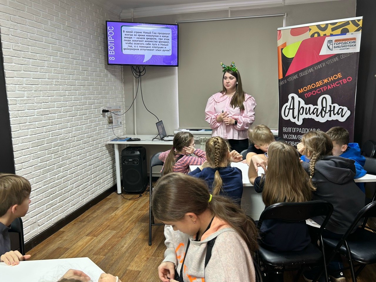 26 декабря в библиотеке «Ариадна» прошла новогодняя игра «Дед Мороз задаёт вопрос», которая погрузила всех участников в атмосферу новогодних праздников. Ребята, разделившись на команды, проверили свои знания о зимних праздниках, культурных традициях и интересных фактах, связанных с этим волшебным временем года. Участники не только отвечали на вопросы, но и делились своими историями и традициями, создавая тёплую и дружелюбную атмосферу. От историй о том, как они отмечают Новый год, до забавных фактов о Деде Морозе – каждый нашёл что-то интересное для себя. Поздравляем победителей и благодарим всех участников за активность и позитивный настрой! Мы надеемся, что эта игра стала для вас не только проверкой знаний, но и возможностью узнать что-то новое и весело провести время.