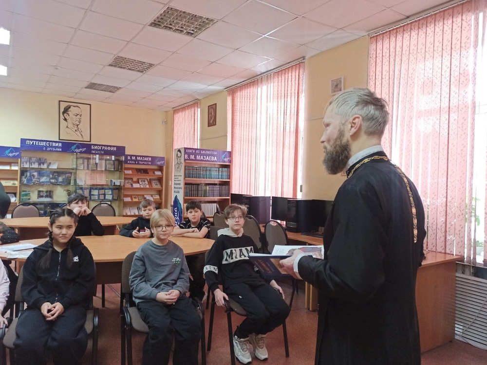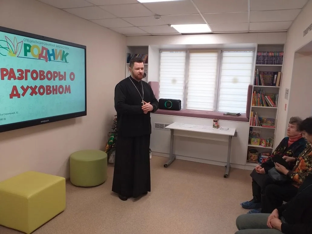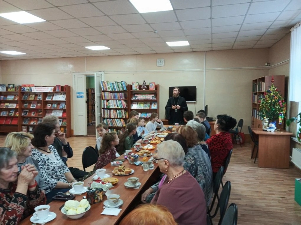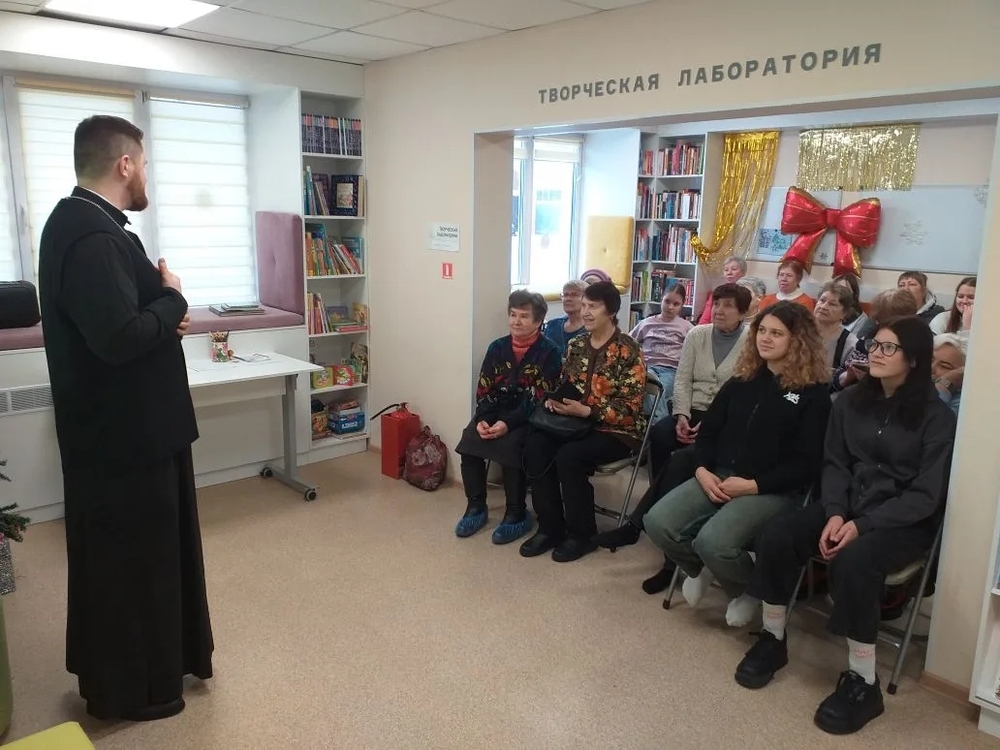 - В Библиотеке им. И. М. Киселева встречу провел Отец Иван из Церкви иконы Божией Матери «Утоли мои печали». Он рассказал о таинстве Рождества Христова, библейских историях и ответил на вопросы посетителей.