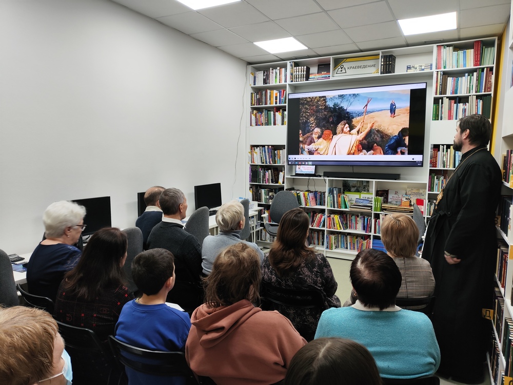 17 января 2026 года в библиотеке «Книжная радуга» (ул. Новогодняя, 2) состоялось первое заседание литературного библейского дискуссионного клуба «Иверский». Встреча приурочена к православному празднику Крещения Господня и посвящена теме «Что такое верность?». Настоятель храма Иверской иконы Божией Матери – протоиерей Сергей Алексеевич Семиков рассказал о Священном Писании – Библии. Каждый знаком с книгой, но не всякий читал ее и тем более не все могут понять осмысленно, что в ней изложено. Изучать послания нужно постепенно и вдумчиво и именно тогда раскроется истинный смысл и пути Господни. Для визуализации образа Сергей Алексеевич подготовил для гостей встречи видеофрагмент «Евангелия вслух», это популярный видеопроект на телеканале «Спас», суть которого заключается в том, что послания зачитают знаменитые актеры, телеведущие. Сегодня темой для беседы и обсуждения стало послание от Марка глава 1, которое в видеофрагменте зачитал телеведущий Андрей Малахов. Основой для дискуссии стали таинство Крещения, роль крестных родителей и смысл принятия этого обряда в осознанном возрасте. Участники также обсудили интересный исторический факт: на Руси крестили лишь трижды в год – на Рождество, Крещение и Пасху. Приглашаем всех желающих на следующую встречу клуба «Иверский», которая состоится 31 января. Тема для обсуждения: «О честном труде». Библиотека семейного чтения «Книжная радуга», тел.: 69-26-93.