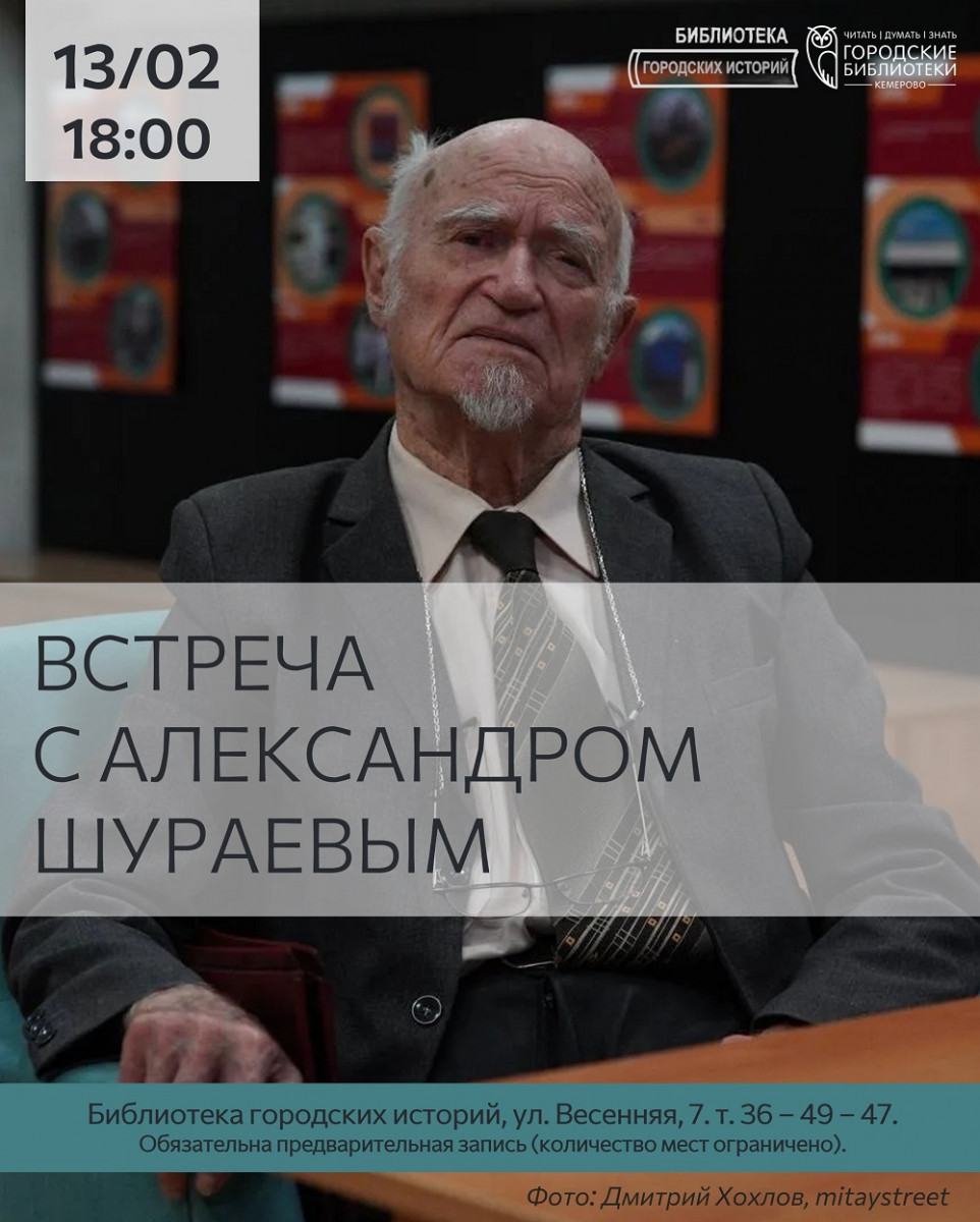 13 февраля 2026 года в 18:00 в Библиотеке городских историй пройдет встреча с Александром Фроловичем Шураевым.