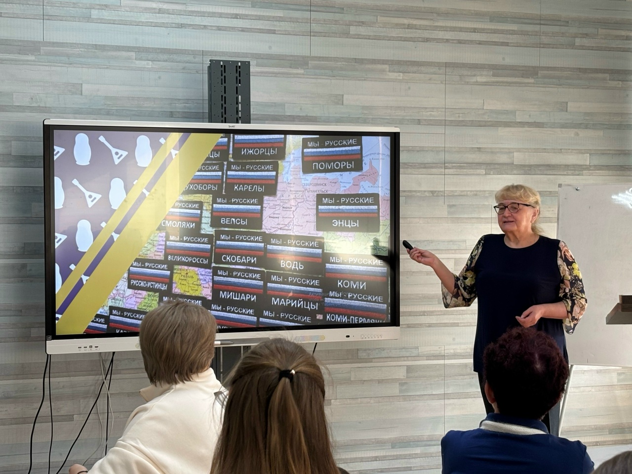 Роот Евгения Викторовн­а, главный библиотекарь библиотеки «Инфосфера» подробно остановилась на работе по просвещению читателей в области многообразия национальностей, проживающих на территории России.