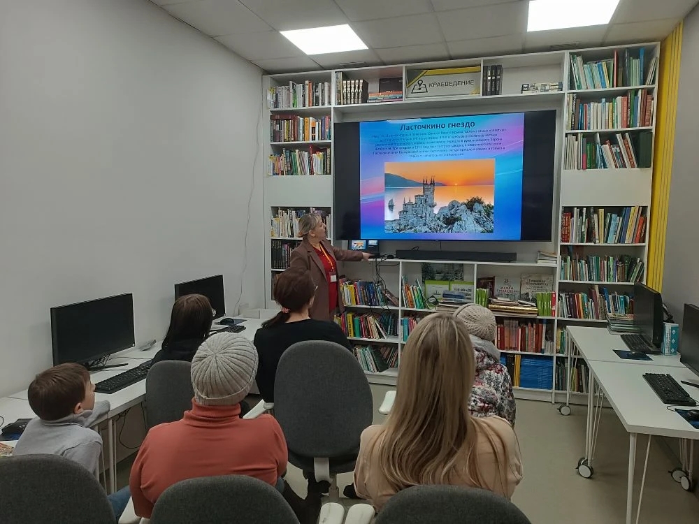 Присутствующим представили обзор ключевых событий в истории полуострова: от манифеста Екатерины II до обороны Севастополя. Завершилась встреча виртуальной экскурсией по достопримечательностям Крыма, включая Ласточкино гнездо и Кояшское озеро.